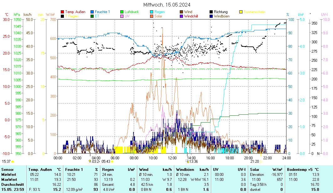 T max 21,8 °C und T min 9,0 °C (T mittel 15,24 °C)