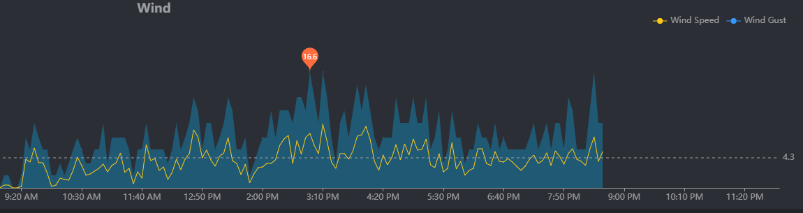 Da ist mir noch eine Sache aufgefallen....Das Verlaufsdiagramm der DP1500 weist eine Höhere Durschnittsgeschwindigkeit des Windes auf, als die der WH3000SE ? Misst die DP1500 in engeren Zeitabständen als die WH3000SE ?