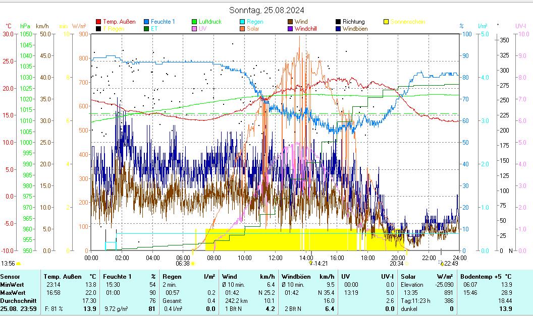 T max 32,2 °C und T min 15,9 °C (T mittel 24,98 °C)
