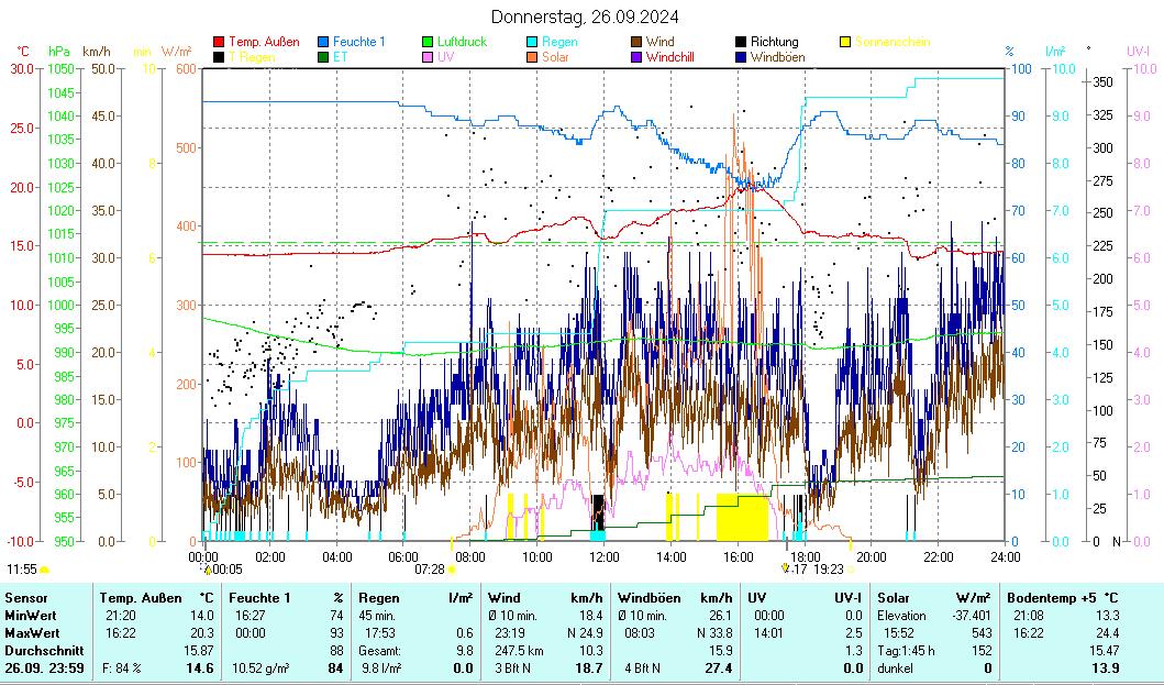 Windgeschwindigkeit max 24,9 km/h N min 1,6 km/h