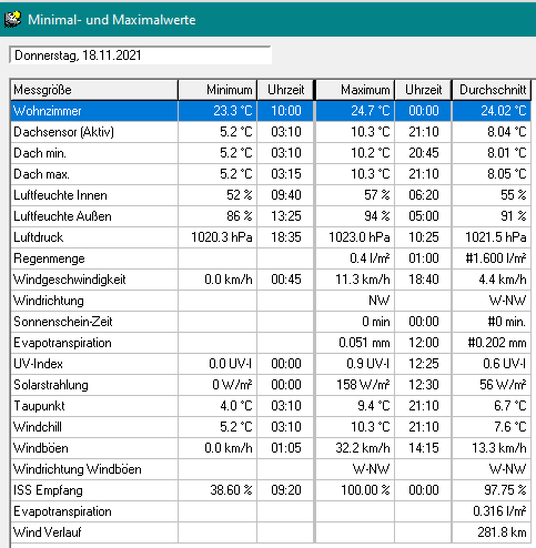 Windgeschwindigkeit max 16,4 km/h W min 1,2 km/h
