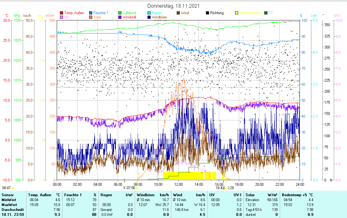Windböen max 25,7 km/h NW min 1,6 km/h