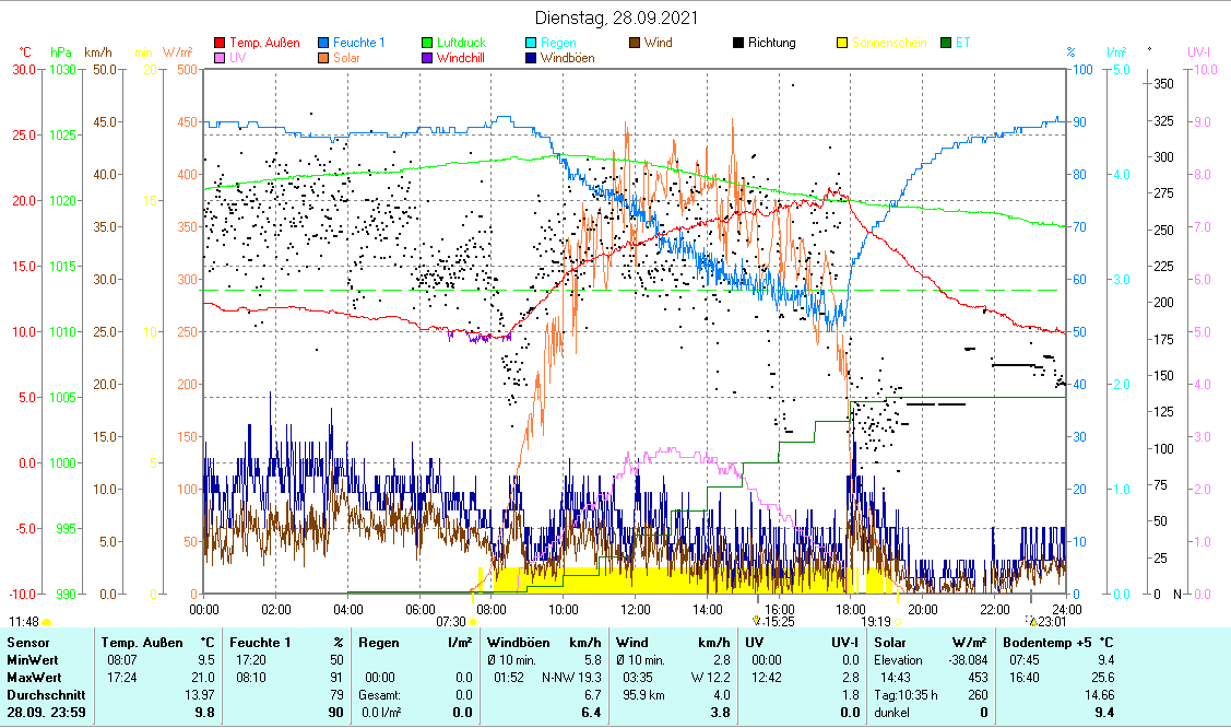 Windgeschwindigkeit max 21,7 km/h W min 0,0 km/h