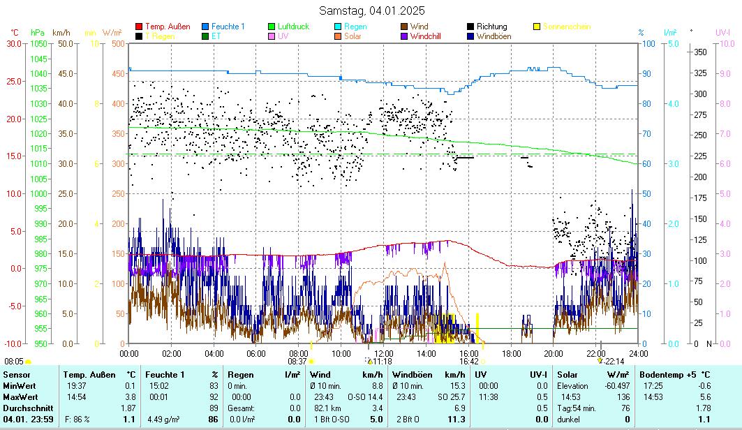 Windgeschwindigkeit max 19,3 km/h SO min 2,5 km/h