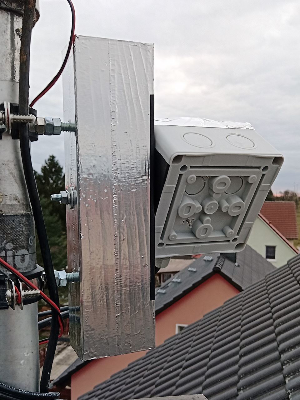 das Projekt zieht sich mehr, als ich es mir vorstellen konnte. Erst war es das Wetter, das ewig nicht gepasst hat. Ständig Regen und Wind. Dann hatte ich Probleme mit dem Netzwerkkabel. Cat7 Kabel lässt sich durch die Schirmung der 4 Aderpaare schon nicht mehr so einfach crimpen. Zumal die weißen Adern (rot-weiss, grün-weiss, ...) nur noch weiß sind. Bei den anderen Kabeln haben die weissen Adern ein dünnen Strich in der zugehörigen Farbe, was das Sortieren erheblich erleichtert. Dann hatte ich mir ein Set aus 20x RJ45 Stecker + Knichschutz + Einfädelhilfe bestellt. Die dicken Adern des Cat7 Kabel ließen sich nur mit viel Kraft und meist daraus resultierendem Knicken, in die Einfädelhilfe einführen. Immerhin, das dicke Cat7 Kabel bis raus aufs Dach hat auf Anhieb funktioniert. Der in einer Aufputz-Abzweigdose installierte 5-Port-Switch, hat auf Anhieb eine Gigabit-Verbindung angezeigt. Aber von dort aus kam ich mit dem Cat7 Kabel nicht weiter. Erst als mir ein ungeschirmtes Cat5e Kabel in die Hand fiel, gestaltete sich die Sache deutlich einfacher. Hier waren die Adern deutlich dünner und auch waren die weissen Adern mit einer dünnen, farbigen Linie versehen. Zudem sind sie sehr viel flexibler und nicht so steif und starr wie das Cat7 Kabel. Damit klappte das Crimpen und der erste Raspberry war gestern Nachmittag kurz online. Kurz deswegen, weil der Pi4 so seine Extrawünsche in Sachen Strom und Spannung hat. Trotz 5V/3A Netzteil stoppte der Pi das Booten wegen Unterspannung. Meine Fritzbox hatte ihn als neues Gerät im Netzwerk erkannt, aber SSH Zugriff war, obwohl erlaubt, nicht möglich. Selbst ohne die ca. 8m Kabel zwischen Pi und Netzteil, hatte ich bei der Einrichtung mit angeschlossenem CSI-Kameramodul immer wieder einen gelben Blitz im Bild, womit der Pi Unterspannung signalisiert. Daher habe ich mir nun 2 "Original Raspberry Pi Netzteile" für den Pi 4 mit 5,1V und 3,5A bestellt, in der Hoffnung, dass damit dann endlich alles läuft. Gleich 2 Netzteile, weil beide Cams ihr eigenes Netzteil bekommen. An dem Netzteil der alten Webcam hängt zudem der 5-Port-Switch. Damit ist das Netzteil gut ausgelastet. Das zweite Netzteil wird die AllSky-Webcam bedienen, sowie den LNA4ALL-Verstärker in der Antennenleitung. Auch wird an dem AllSky-Pi der DVB-T Stick zum Satellitenempfang zum Einsatz kommen, der auch gut Strom zieht. Der Strom geht über ein 4-adriges Kabel (2-Adern je Netzteil/Raspberry) vom Netzteil, rauf aufs Dach.