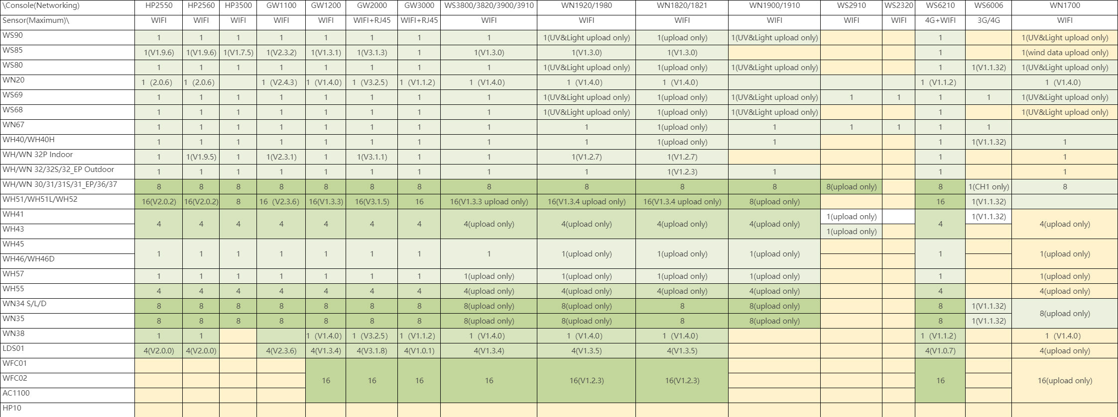 GW1000, GW1100, GW1200, GW2000, GW3000, WH2650,WS6210,