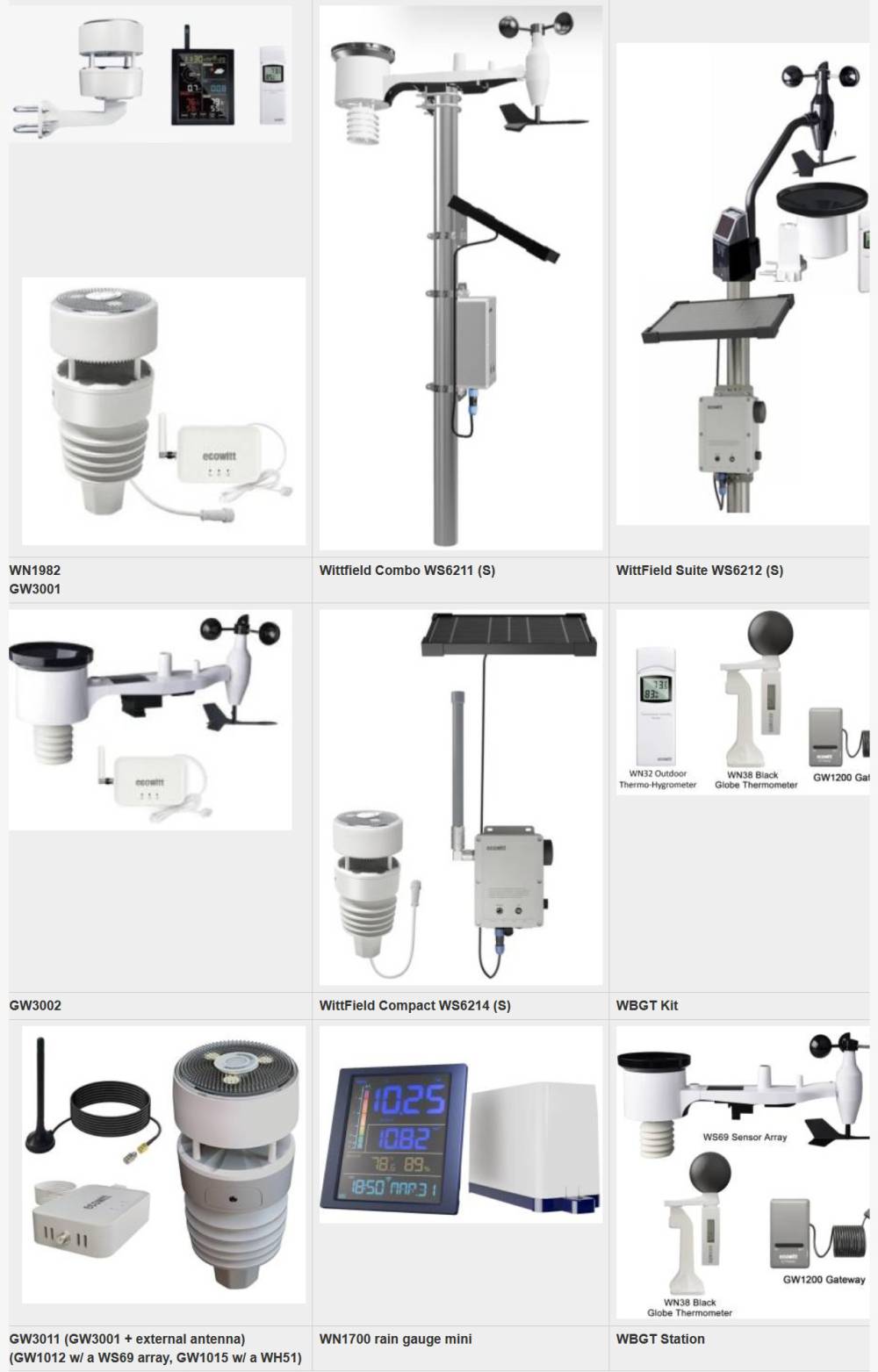 - GW1x01 = GW1x00 + WS69 Ausseneinheit (Froggit DP1500 + WH4000SE Ausseneinheit, auch in einer GW2000-Variante erhältlich)